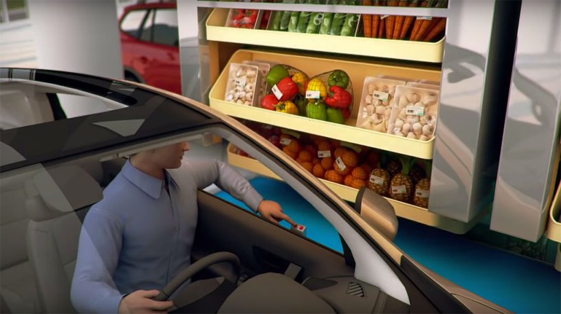 Kita mengenal sistem drive-through (drive-thru) itu biasanya diterapkan pada pembelian makanan cepat saji (fast-food). Bagaimana jika sistem drive-thru tersebut diterapkan pada supermarket atau toko-toko yang jauh lebih besar dan beragam produknya?